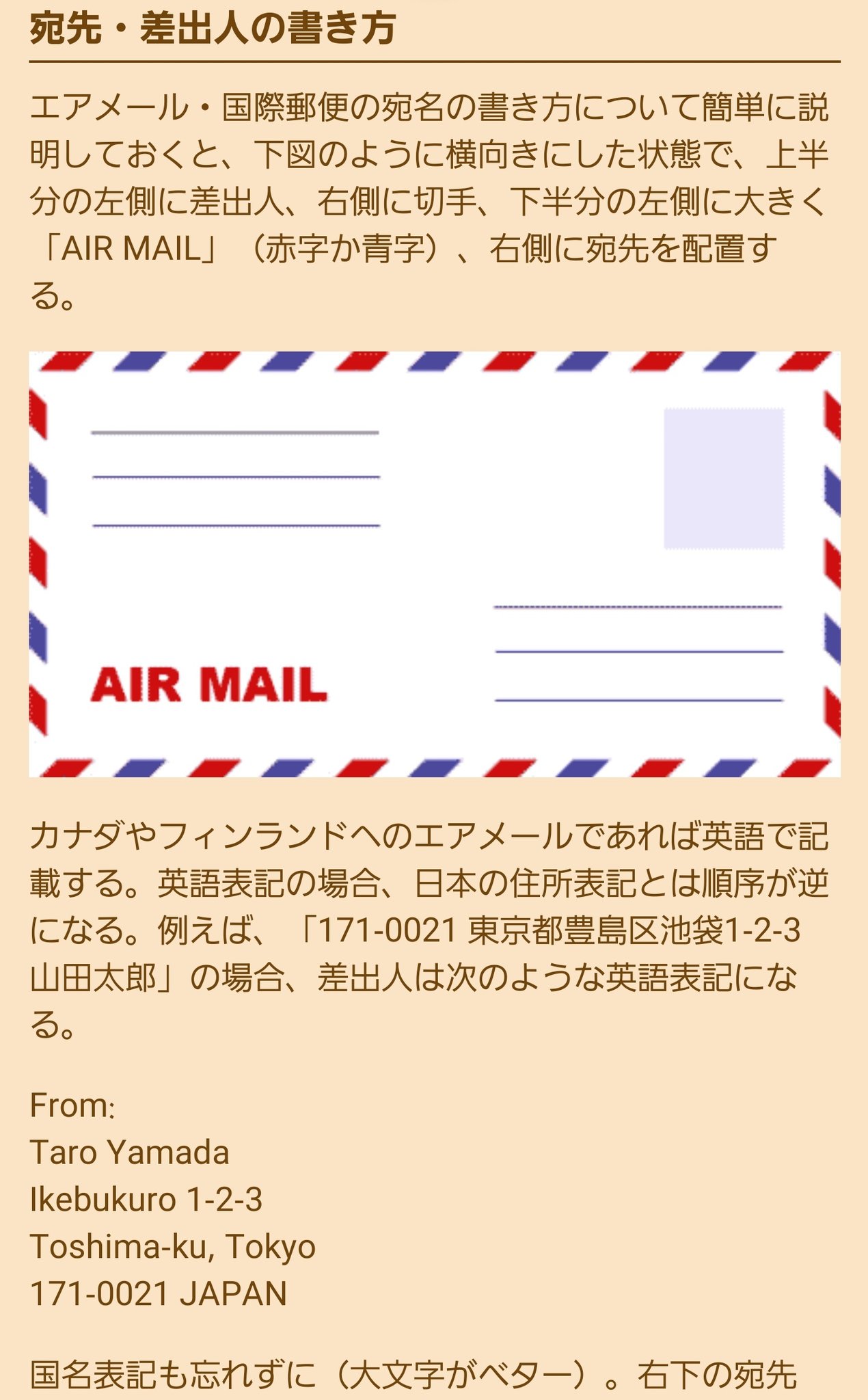 国際郵便 エアメール の書き方 封筒の住所やハガキの宛名の記入例