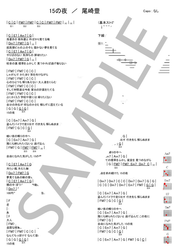 15の夜 尾崎 豊 ギター弾き語り 入門 初級 ギター ウクレレ用コード譜 弾き語り用 Piascore 楽譜ストア