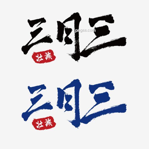 壮族三月三手写毛笔字体png搜索网 精选免抠素材 透明png图片分享下载
