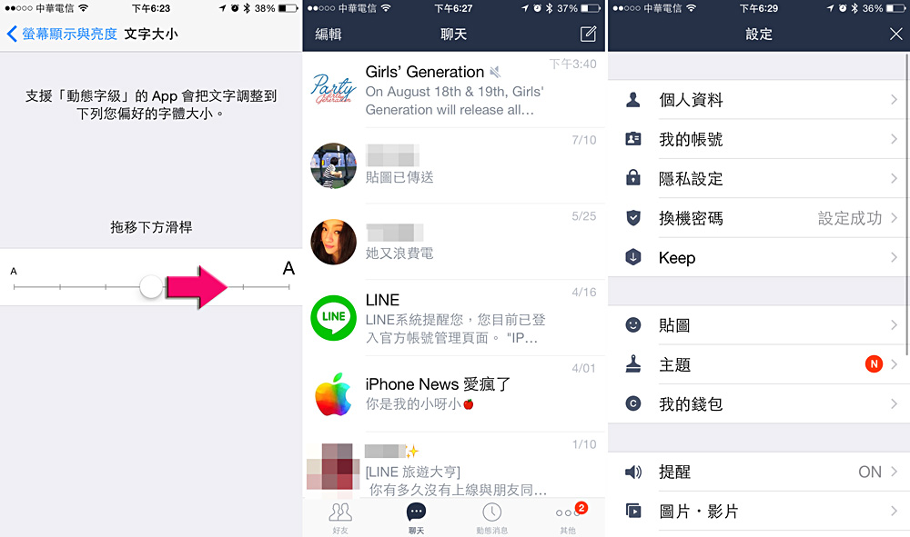 Iphone Line文字放大支持動態字級聊天不為了小字體而吃力了 Ucamc