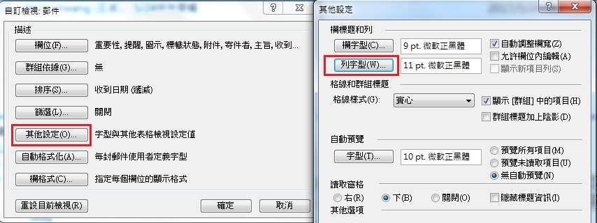 Outlook 2007 變更郵件清單的字型大小 The Color Moon 月亮彩色