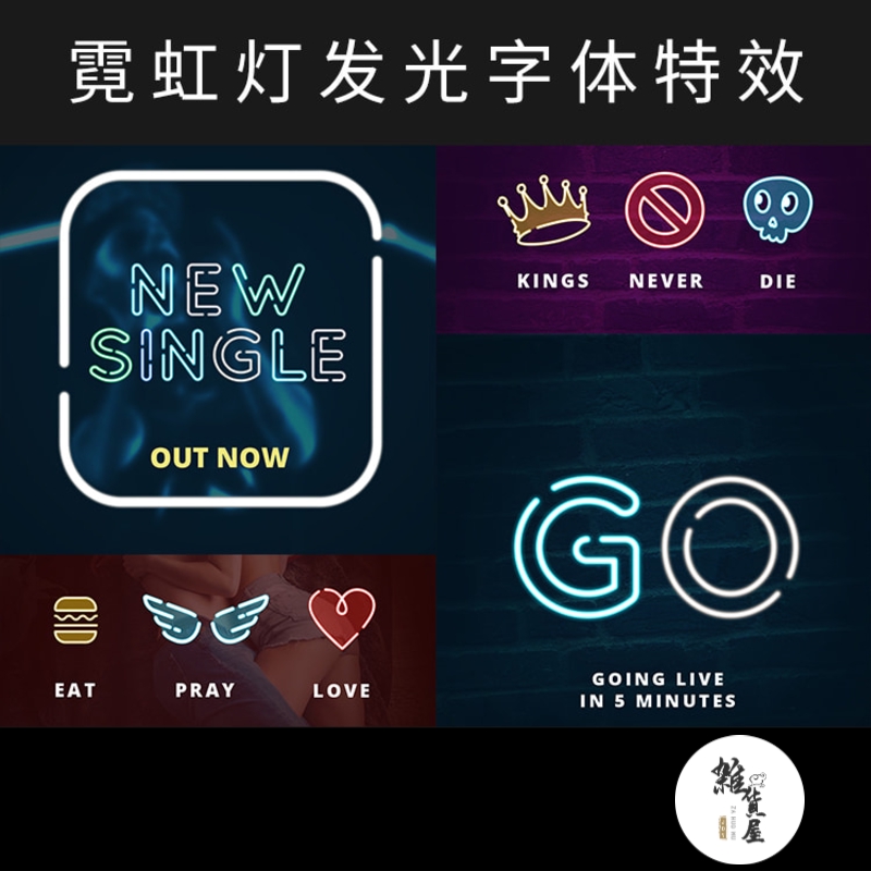 Ps字體炫彩樣式霓虹燈發光特效psd海報模板文字智能樣機設計素材 蝦皮購物