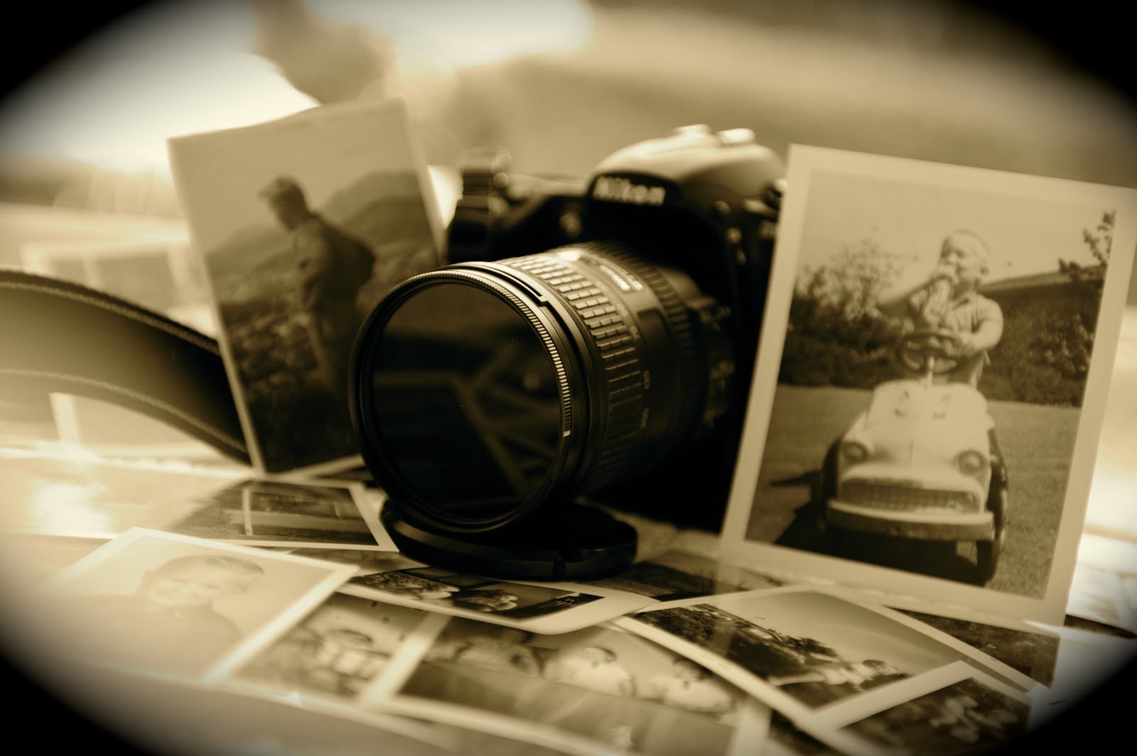 Image Of Dslr Camera And Sdhc Memory Cards On Desk Near Pc